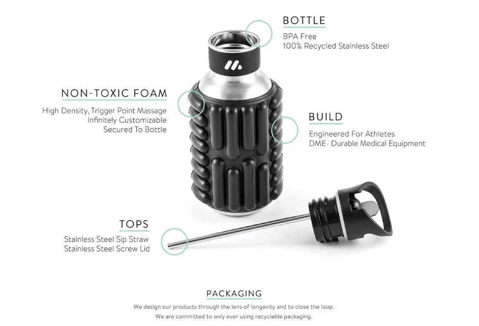 MOBOT's are lightweight, convenient and save you time and money. Designed to go with you, so you can feel good anywhere! We combined a sustainable water bottle and eco-friendly foam roller to help your body and the planet.